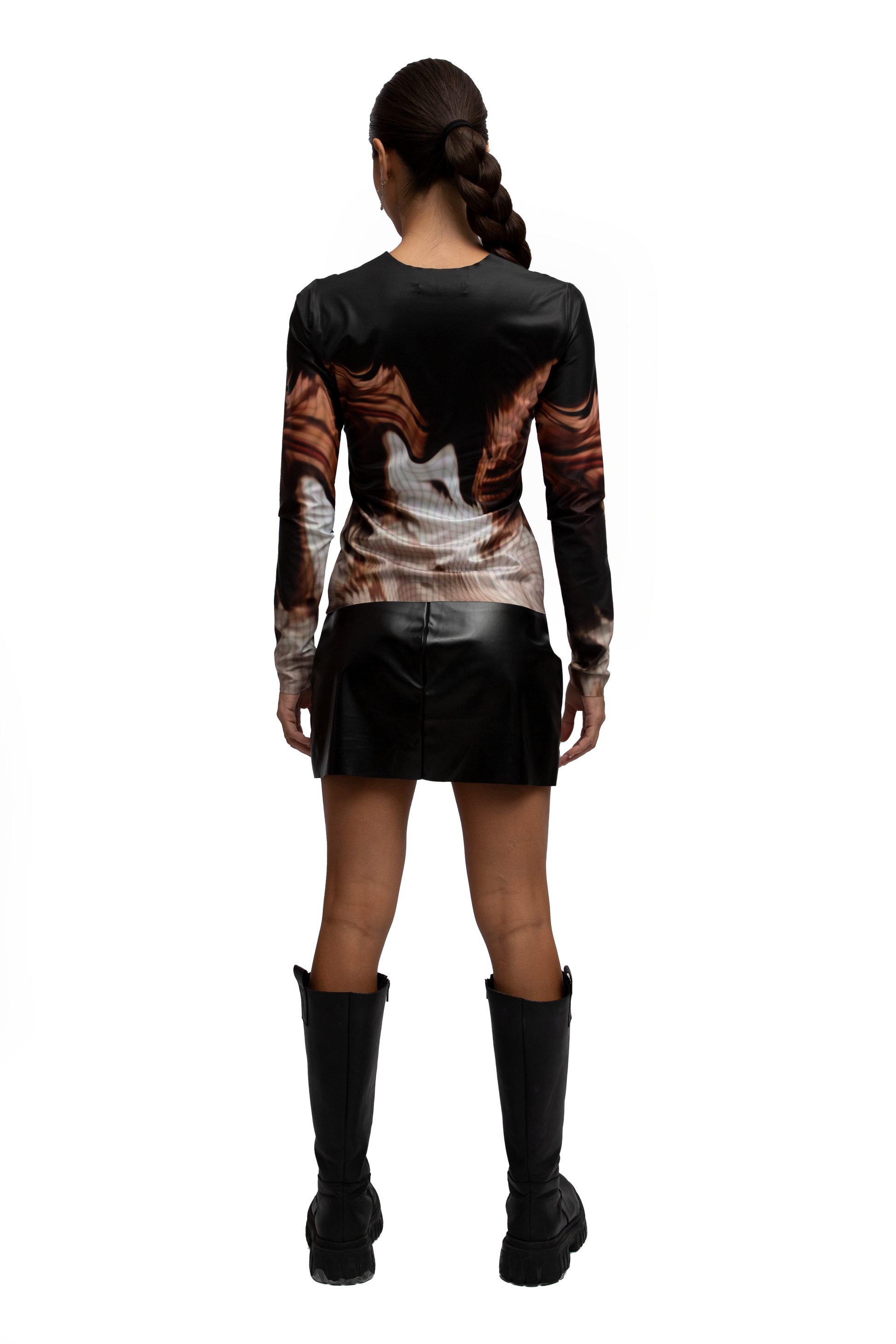 Stretchy long sleeve shirt. Fitted in style. Unlined.