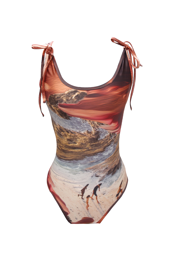 Bodysuit featuring a round open back fastened with a simple knot. Complemented by two removable bows on the front for versatile styling.