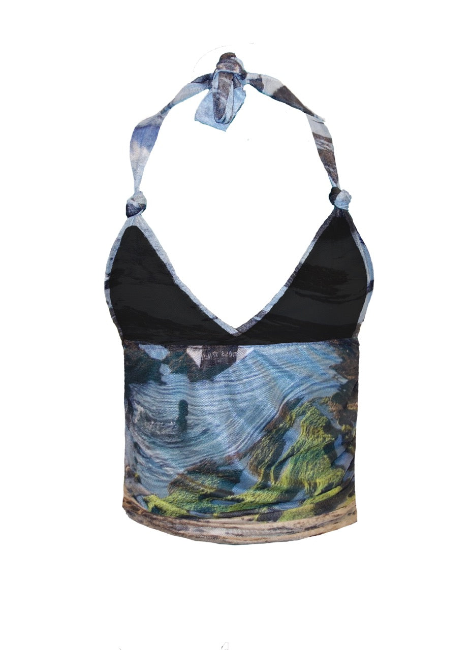 Elevate your style with our chic and versatile mesh top, designed with your comfort and fashion in mind. You have the freedom to adjust it by tying it up at the neck, just like a swimsuit. This lined top offers extra support where needed, ensuring a perfect fit.