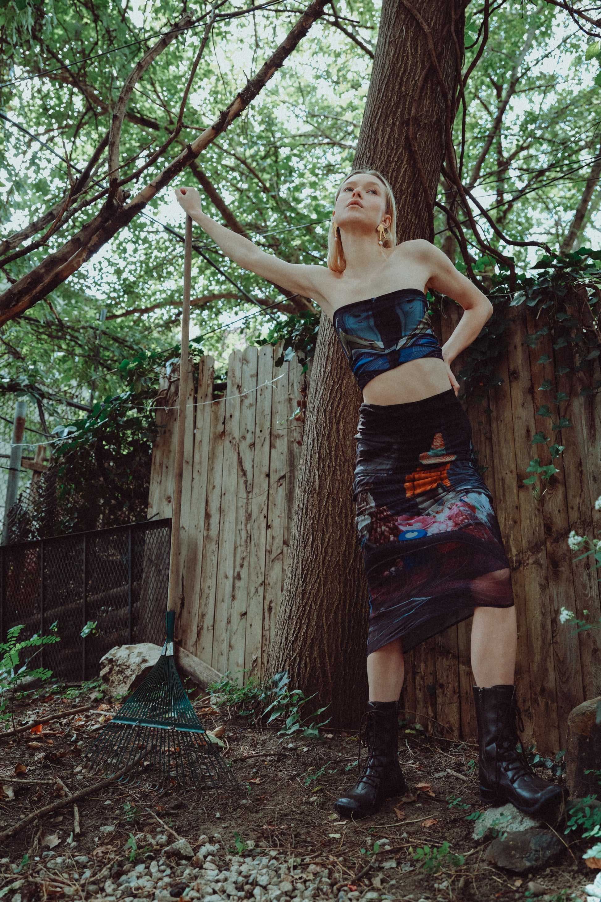 Make a statement with our stunning maxi skirt, crafted from breathable mesh fabric and lined for comfort. Featuring a captivating print captured during a humid summer in the streets of Bangkok, this skirt effortlessly combines style and comfort.